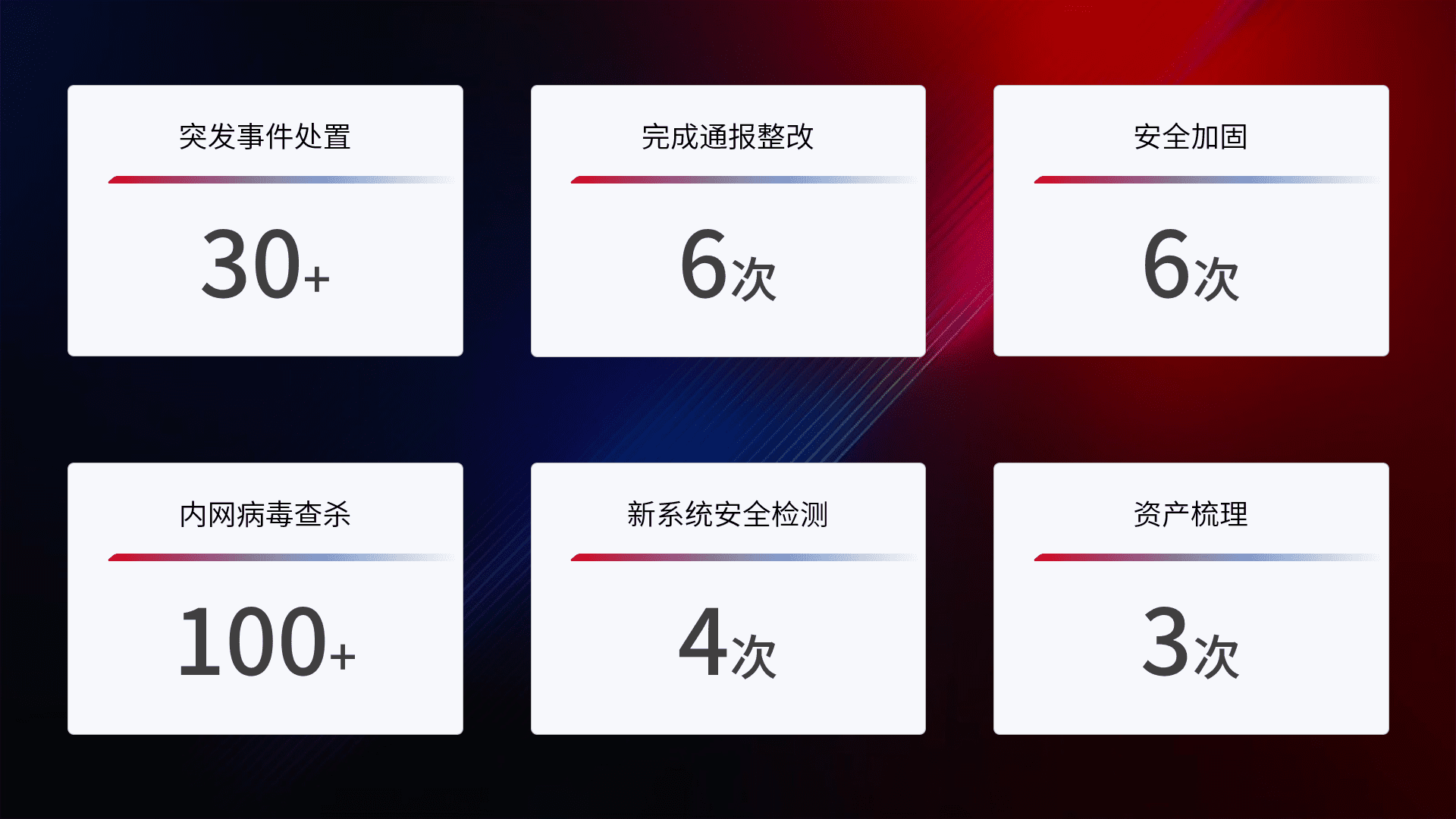 安全水平提升与事件响应:派驻经验丰富的安全工程师,,,,提升医院网络安全防护的整体水平;建立突发网络安全事件的处置流程,,,提高响应速度和处置能力。。。